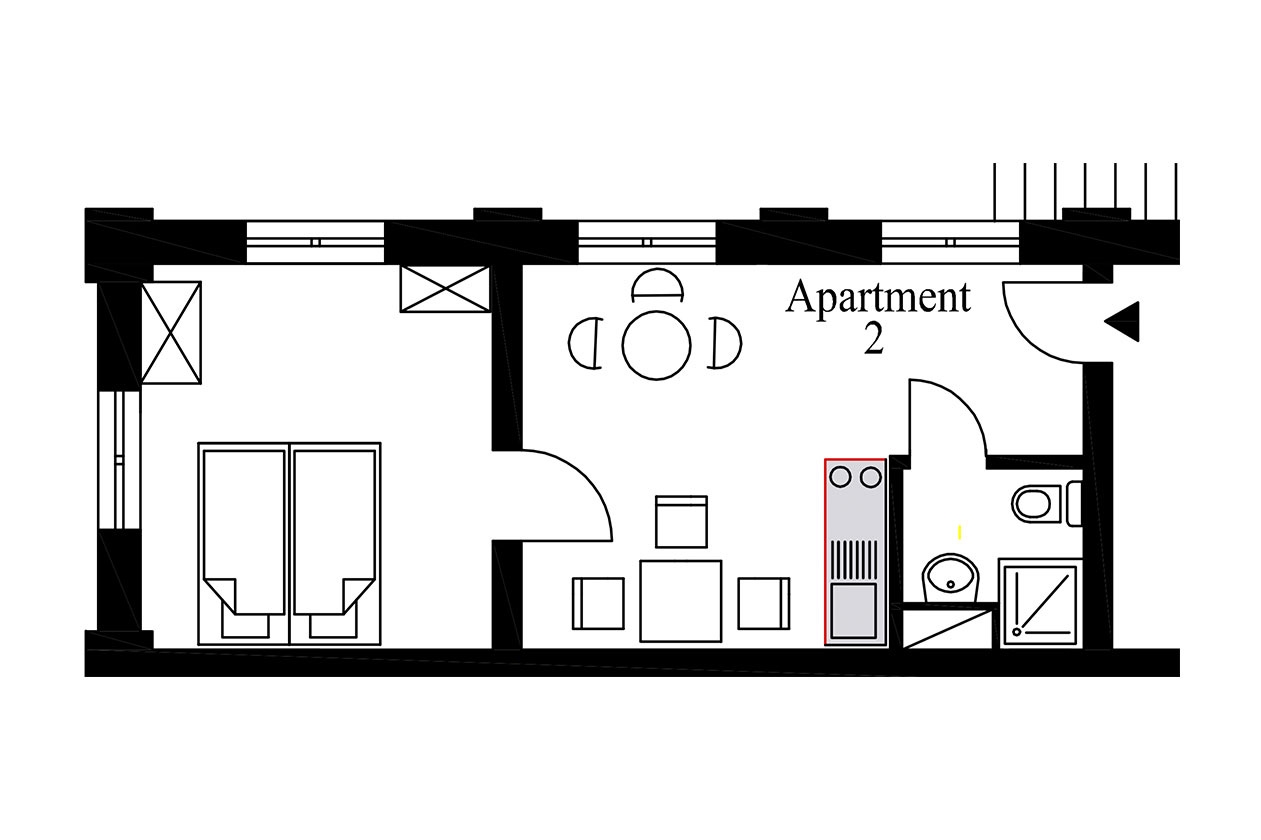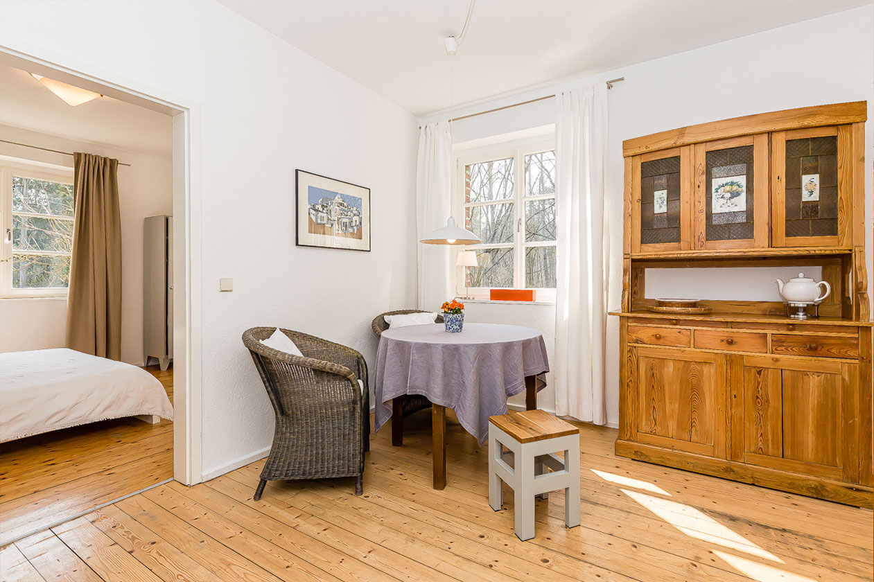 Die Ferienwohnung 2 befindet sich im Scheunengebäude im Hochparterre. Eine gemütliche kleine Ferienwohnung, in der sich Retro und Moderne treffen und mit feinen Farbakzenten verbunden werden.