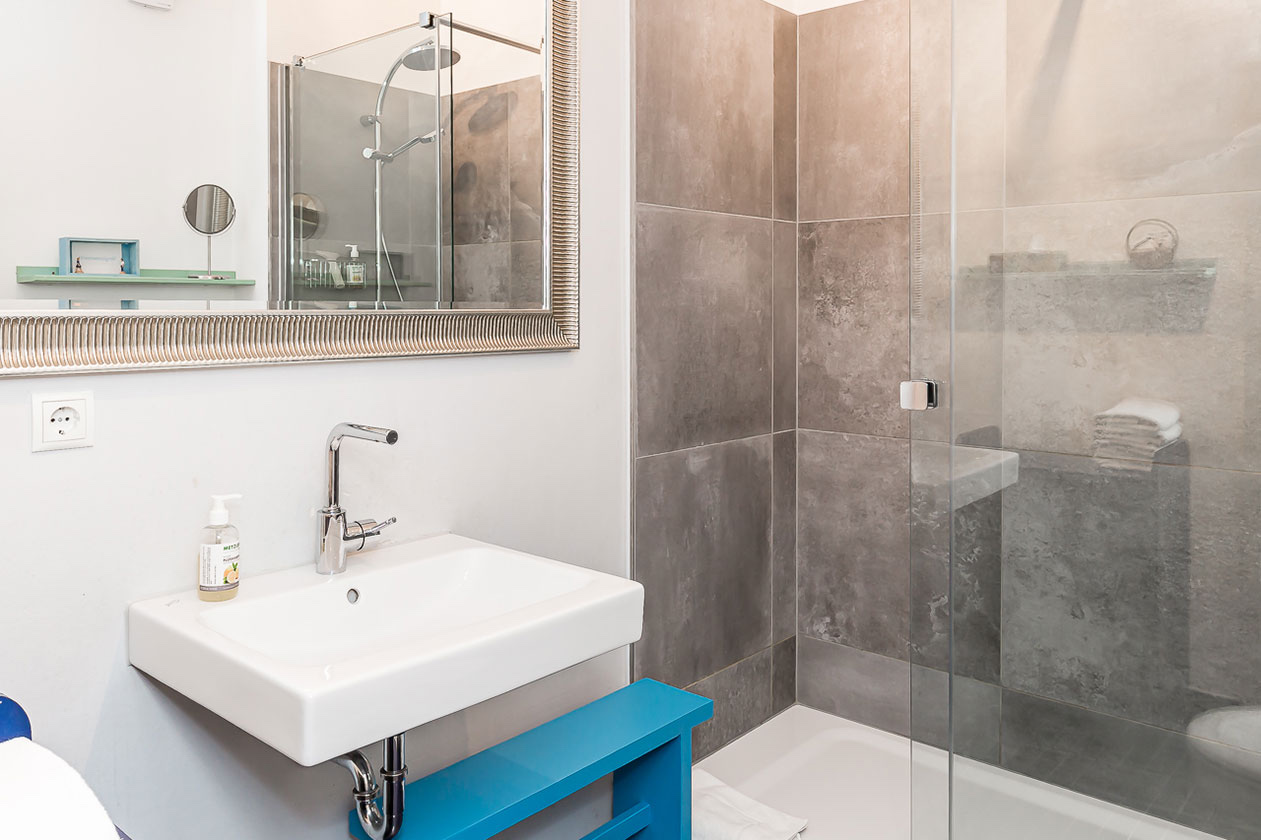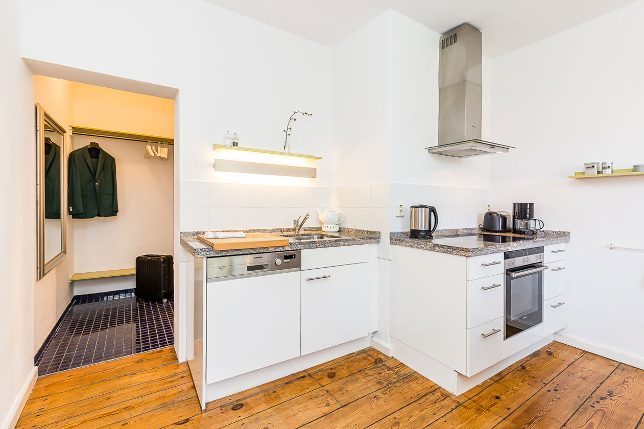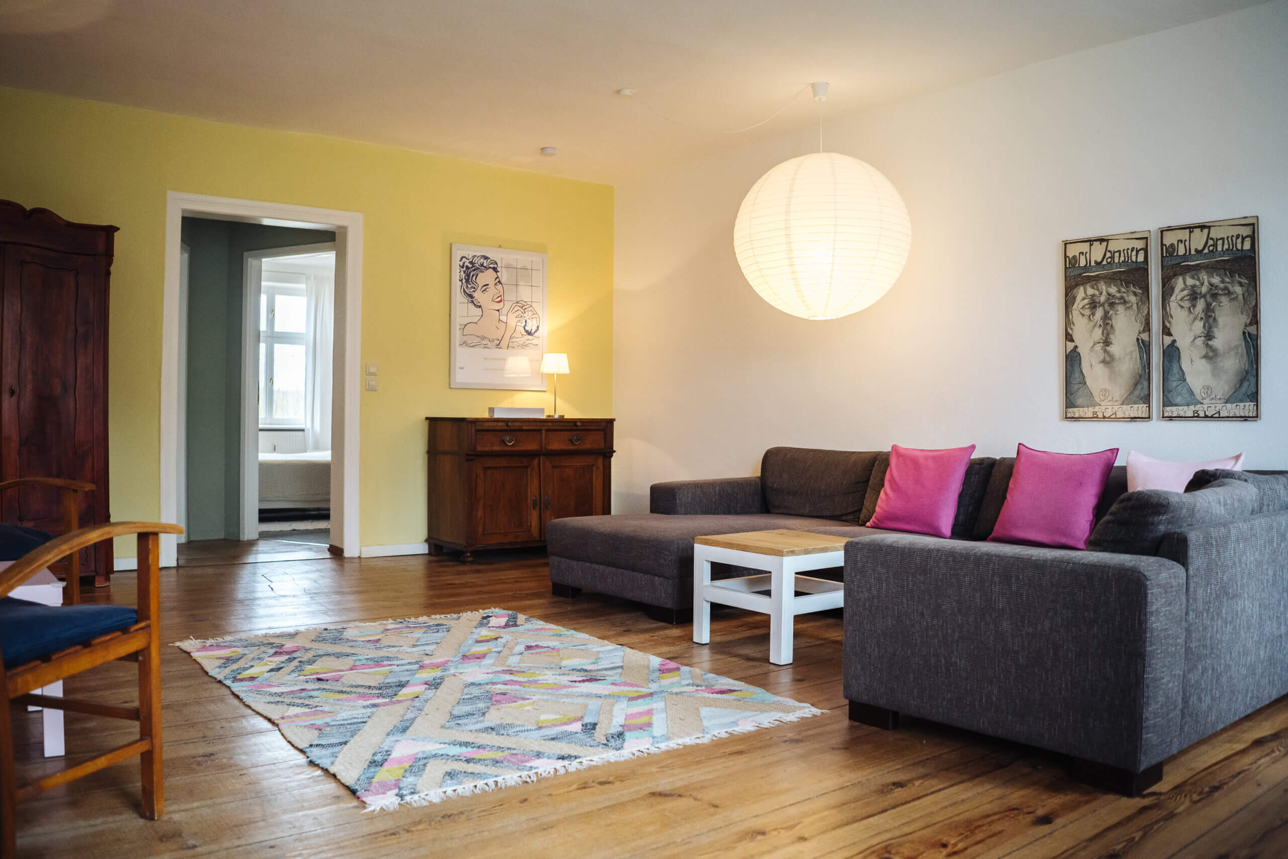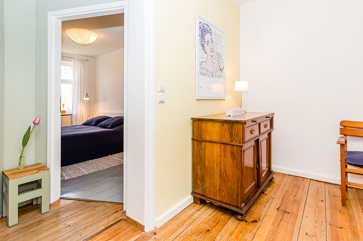 Aus dem 1. OG im alten Gutshaus hat man einen tollen Blick über den gesamten Innenhof. Mit großem Wohnraum, einer gemütlichen Küche und zwei getrennten Schlafzimmern bietet unsere Ferienwohnung 9 viel Platz für Freunde oder Familien.
